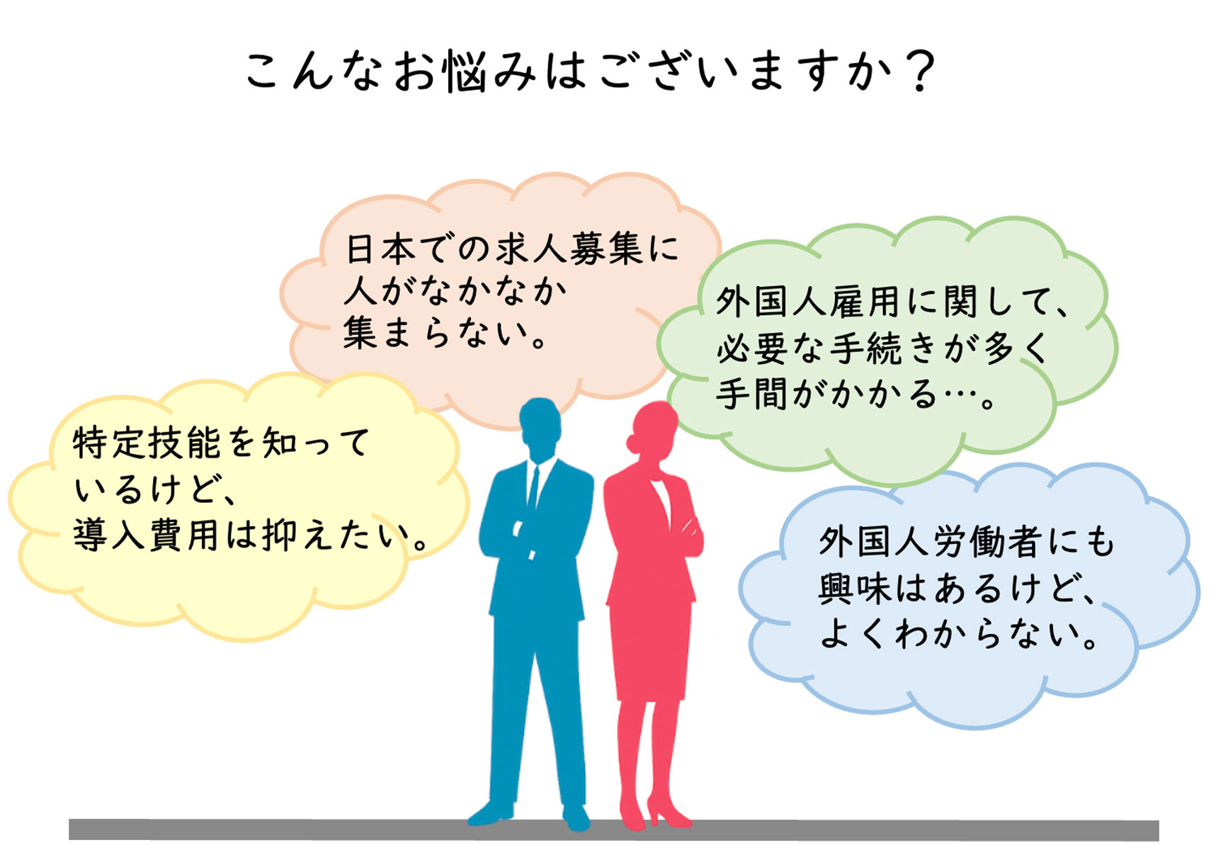 日本の人手不足は年々深刻化しており、終身雇用が当たり前だった時代とは異なり、日本の 国内でも転職を繰り返す人も増えています。 人手不足解消の一つの方法は外国人労働者(特定技能)を採用することです。グローバル化が進む今般、日本企業で働きたいと意思をもっている外国人はとても増えております。